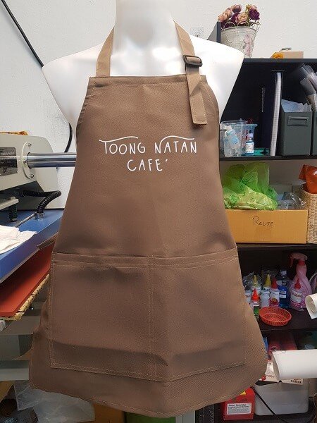 ผ้ากันเปื้อนของทางร้านมีหลายแบบ หลายสี หลายราคาให้เลือกตามงบประมาณและการใช้งาน การตัดเย็บ มีทั้งแบบเต็มตัวและครึ่งตัว นอกจากนี้ยังรับสกรีนและปักผ้ากันเปื้อนตามแบบ สกรีนโลโก้ร้าน โลโก้แบรนด์ สำหรับร้านอาหาร ภัตตาคาร โรงแรม ร้านกาแฟ cafe เพื่อส่งเสริมภาพลักษณ์ธุรกิจของคุณให้ดูดีขึ้น บ่งบอกถึงความเป็นมืออาชีพ ดูเรียบร้อย