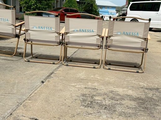 ✅ เก้าอี้สนามพร้อมที่วางแก้ว – ใช้งานสะดวก มีช่องใส่ขวดน้ำ