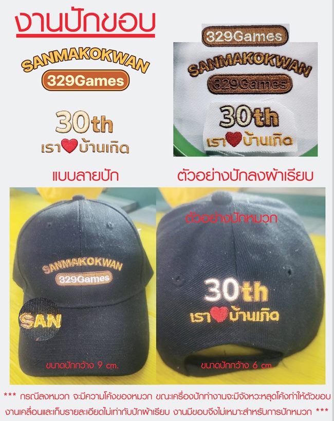 พื้นที่ปักบนหมวกมีจำกัด หมวกแก๊ปด้านหน้าทั่วไปมีพื้นที่ปักประมาณ 7x5 ซม. ถึง 10x7 ซม. ขึ้นอยู่กับทรงหมวกค่ะ ดังนั้นโลโก้หรือลายที่จะปักควรดูดีในขนาดเล็กด้วย